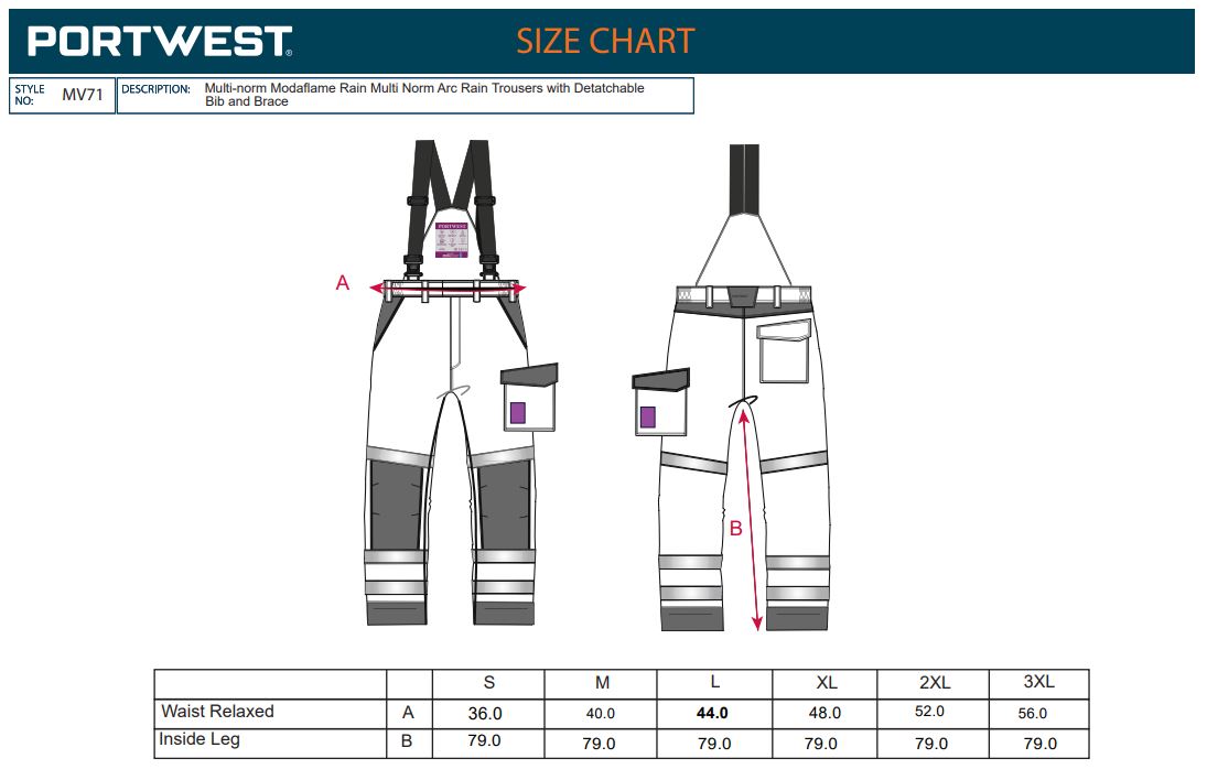 Product Datasheet - https://documents.portwest.com/datasheet.php?style=MV71&lang=GB&itemcol=MV71ONR&facility=902