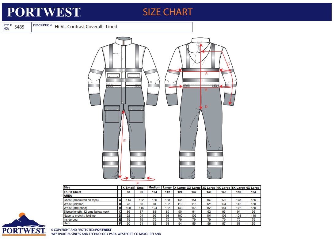 Product Datasheet - https://documents.portwest.com/datasheet.php?style=S485&lang=GB&itemcol=S485ONR&facility=902